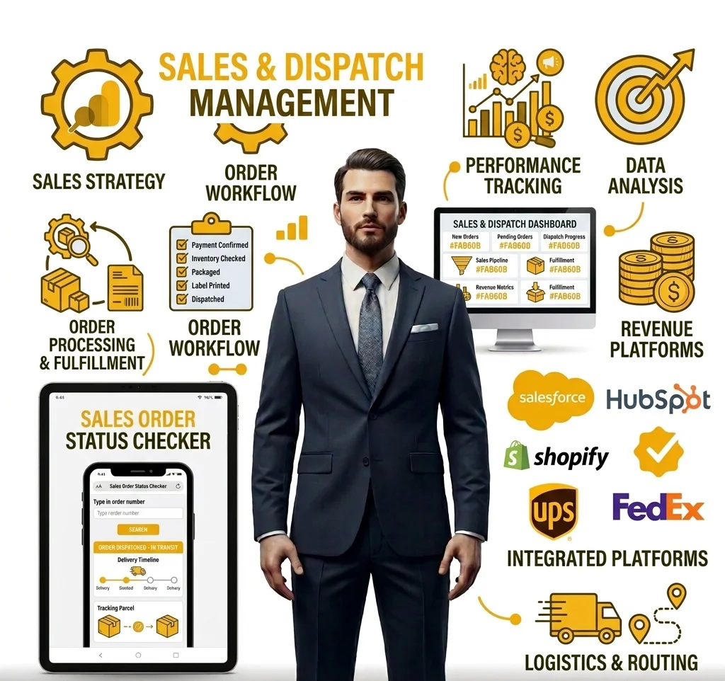 Efficient sales handling, order management and dispatch coordination.